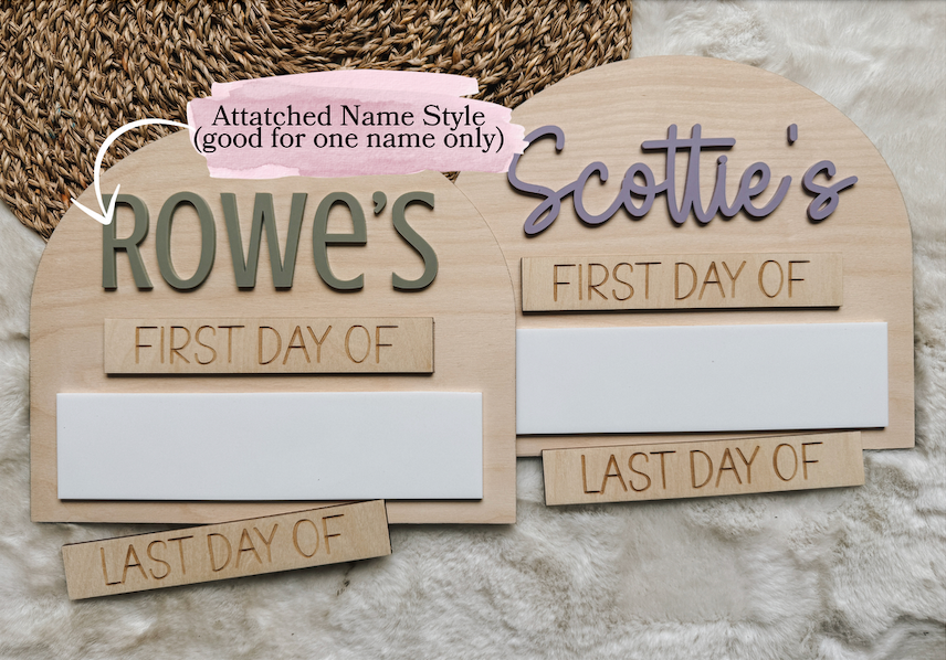 Two name options are available: attached or detached. The attached style suits a single child, with a permanent name, whereas the detached style allows for multiple children by adding extra names. Each board comes with one name included.